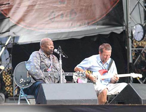 During the middle of the afternoon, Eric Clapton and B.B. King appeared on stage, sat in a couple of folding metal chairs, and wowed the crowd with an extended set which featured their artistry and mastery on blues guitar. Eventually, Buddy Guy emerged to join them on stage, and, a little later, a fourth chair was set up for John Mayer. While John Mayer is an accomplished musician, he appeared to be somewhat tentative as the four guitarists traded licks. After taking the lead for the second or third time, Mayer shook his head slightly, stood up, unstrapped his guitar, laid it on down in front of Clapton, King, and Guy, and walked off the stage. Applause erupted from the crowd in recognition and appreciation of Mayer’s humility and deference toward these significantly older and more seasoned performers. Mayer’s actions were quite unexpected and refreshing, particularly in an industry that is sometimes noted for overblown egos and a desire to dominate the spotlight.